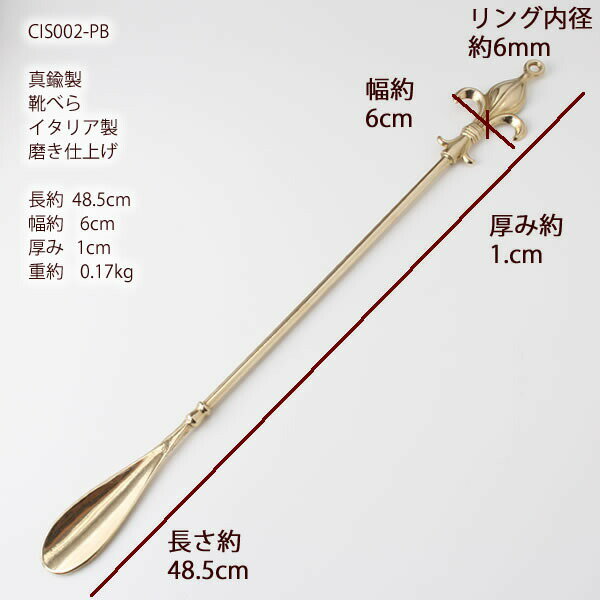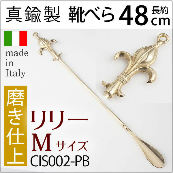靴ベラ 真鍮製品 クツベラ 靴べら くつべら 磨き仕上げ リリー ゆりの紋章 金色【送料半額】 玄関の縁起の良いアイテム 落としても壊れにくい丈夫な金属製 イタリア製 (靴ベラリリー ユリ50-PB磨き仕上げ)(CIS002-PB)【RCP】【asu】