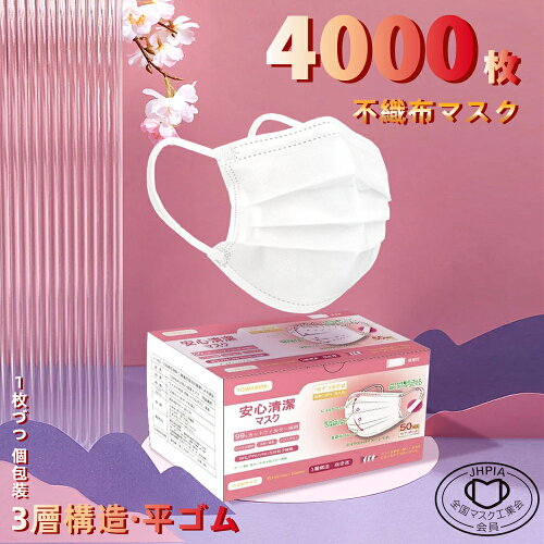 【4000枚】 マスク 平ゴム 1枚づつ 個包装 不織布 使い捨てマスク 小さめ マスク 耳が痛くならない 個別包装 ひも式 ギフト 小顔 3層構造 不織布マスク 飛沫対策 花粉対策 小さめサイズ 在庫あり 男女兼用 大人用 女性用 ホワイト TOWA 東和「全国マスク工業会正会員」
