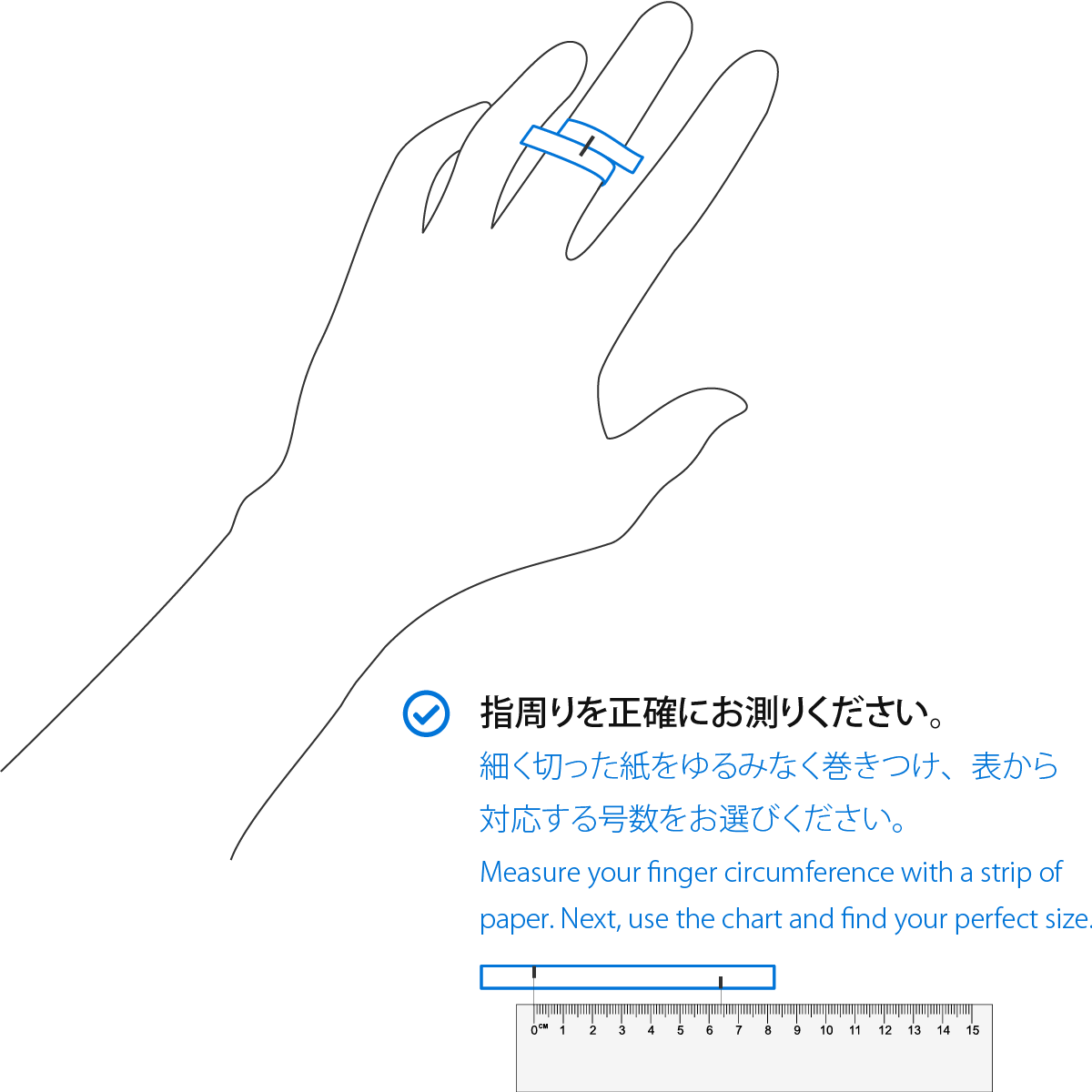 リングサイズ表のいちばん近い指周りに対応する号数をお選びください。