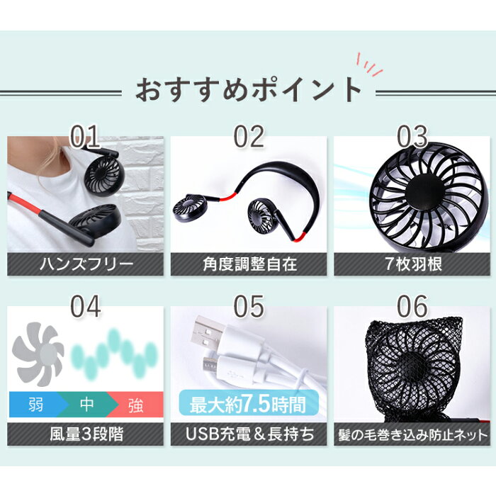ネックツインファン usb充電式 ポータブル扇風機 ミニ扇風機 ミニファン 首掛け式 コンパクト 携帯扇風機 卓上扇風機 ポータブル送風機 持ち運び ポータブルファン おしゃれ プレゼント ギフト ハンズフリー ブラック ホワイト HCF20-07TA【D】