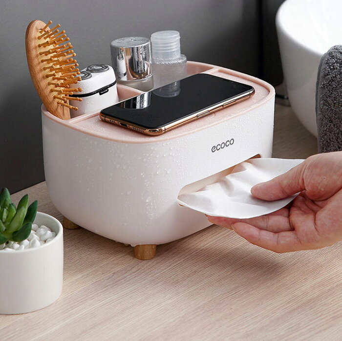 リモコン、携帯電話、眼鏡、文房具、化粧品、ティッシュ、雑用などのテーブル周りの小物をすっきり収納ストレージ、必需品の自宅収納ボックスです。