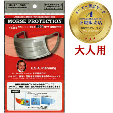 モースプロテクション 5枚個包装×12袋 計60枚 レギュラーサイズ【日本製 大人用 在庫あり 使い捨てマスク サージカルマスク 医療用マスク 国産 箱 PM2.5対応マスク ウイルス 高機能マスク タバコ対策 花粉マスク PM2.5対策 花粉対策 mask 静菌効果が凄い 】