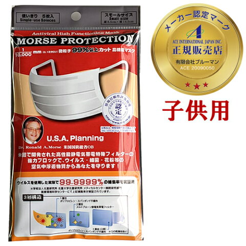 モースプロテクション 5枚個包装×12袋 計60枚 スモールサイズ【日本製 子供用マスク 小さめ 在庫あり 使い捨てマスク サージカルマスク 医療用マスク 国産 箱 PM2.5対応マスク ウイルス 高機能マスク タバコ対策 花粉マスク PM2.5対策 花粉対策 mask 静菌効果が凄い 】