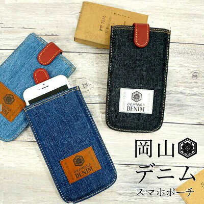 岡山デニム スマホ ポーチ スマートフォン ケース 生地 【 児島デニム 】 ジーンズ スムーズ ノン ウォッシュ ワンウォッシュ ツーウォッシュ レディース メンズ おしゃれ 日本製 iPhone X 8 7 メール便送料無料
