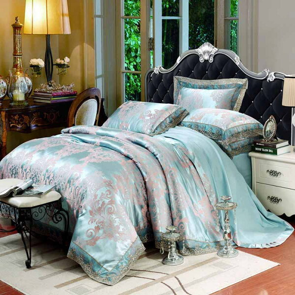 豪華 シルク調ベッドカバー4点セット ユーロデザイン 輸入取寄せ品 シルク寝具セット布団カバー(1)フラットシーツ(1)枕カバー(2) Color-13