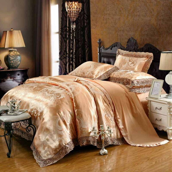 TOP > 豪華 シルク調ベッドカバー4点セット ユーロデザイン 輸入取寄せ品 シルク寝具セット布団カバー(1)フラットシーツ(1)枕カバー(2) Color-14