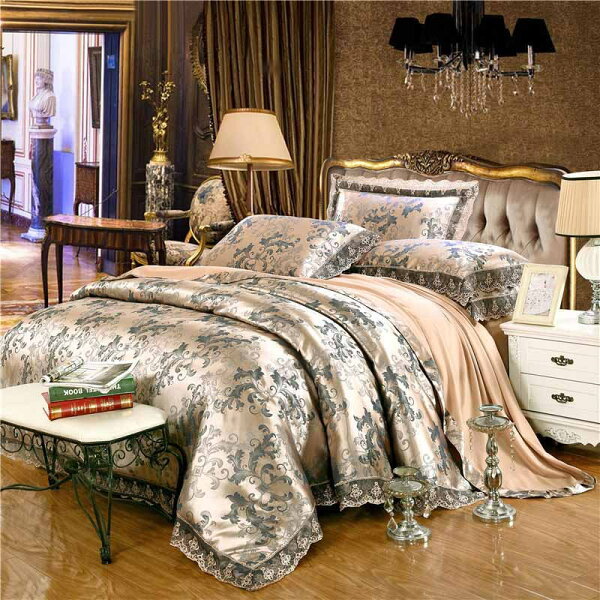 豪華 シルク調ベッドカバー4点セット ユーロデザイン 輸入取寄せ品 シルク寝具セット布団カバー(1)フラットシーツ(1)枕カバー(2) Color-17