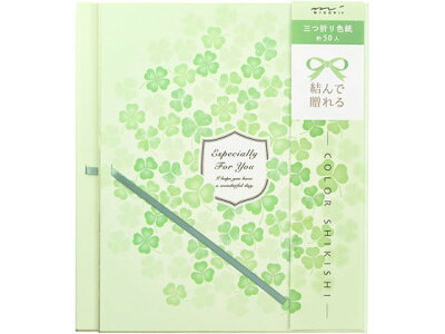 【お取り寄せ】ミドリ/カラー色紙 三つ折り リボン クローバー柄×3冊/33225006