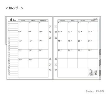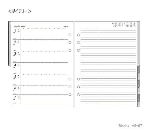 システム手帳リフィル 2023年 A5 6穴 月間&週間ダイアリー1 デスク ビジネス レフィル バインデックス A5-071