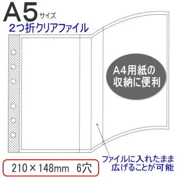 【楽天1位】二つ折りクリアファイル システム手帳 リフィル A5サイズ 手帳に相性が抜群のA4収納 デスクサイズレフィル 6穴 日本能率協会 バインデックス A5-633【ネコポス便対応】