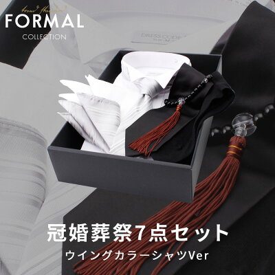 ウイングカラーシャツ [冠婚葬祭7点セット] コンバーチブルカフス 新郎 小物 セット 白 ネクタイ シルバー 黒 ネクタイ 数珠 靴下 チーフ リネン フォーマル ワイシャツ 燕尾服 結婚式 慶事 弔事 お葬式 礼服 礼装 パーティー フォーマルセット タキシード あす楽 送料無料